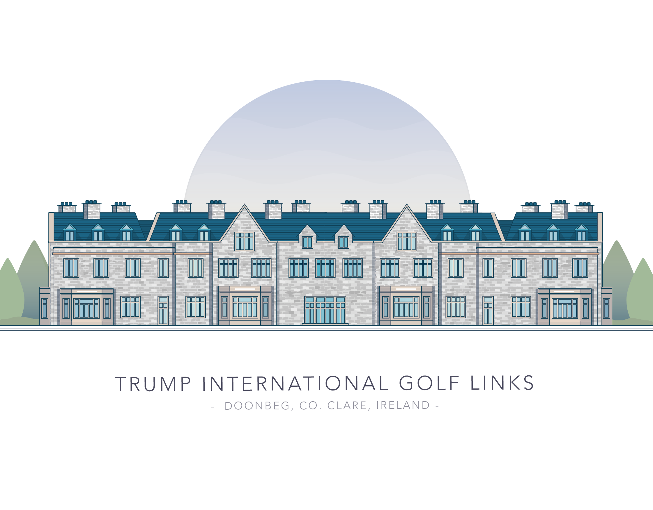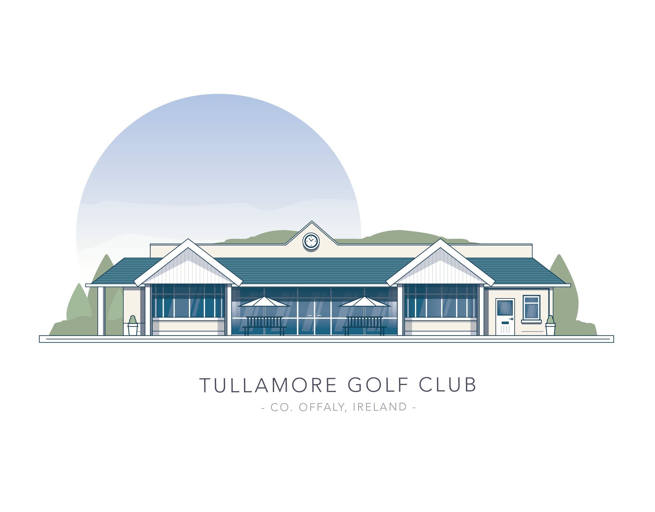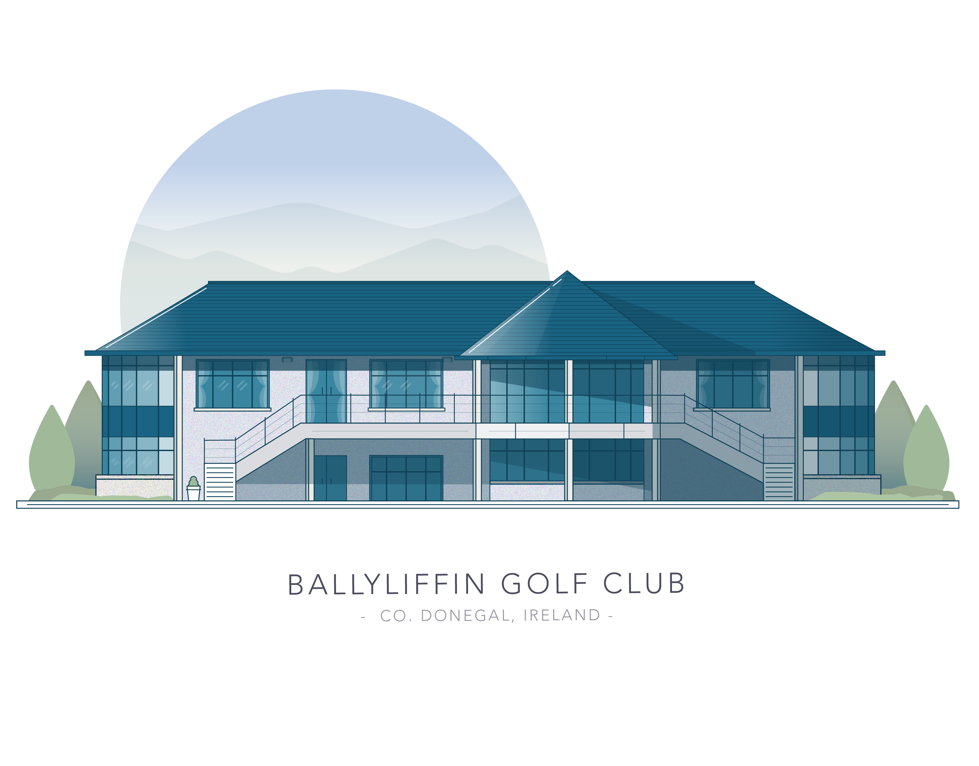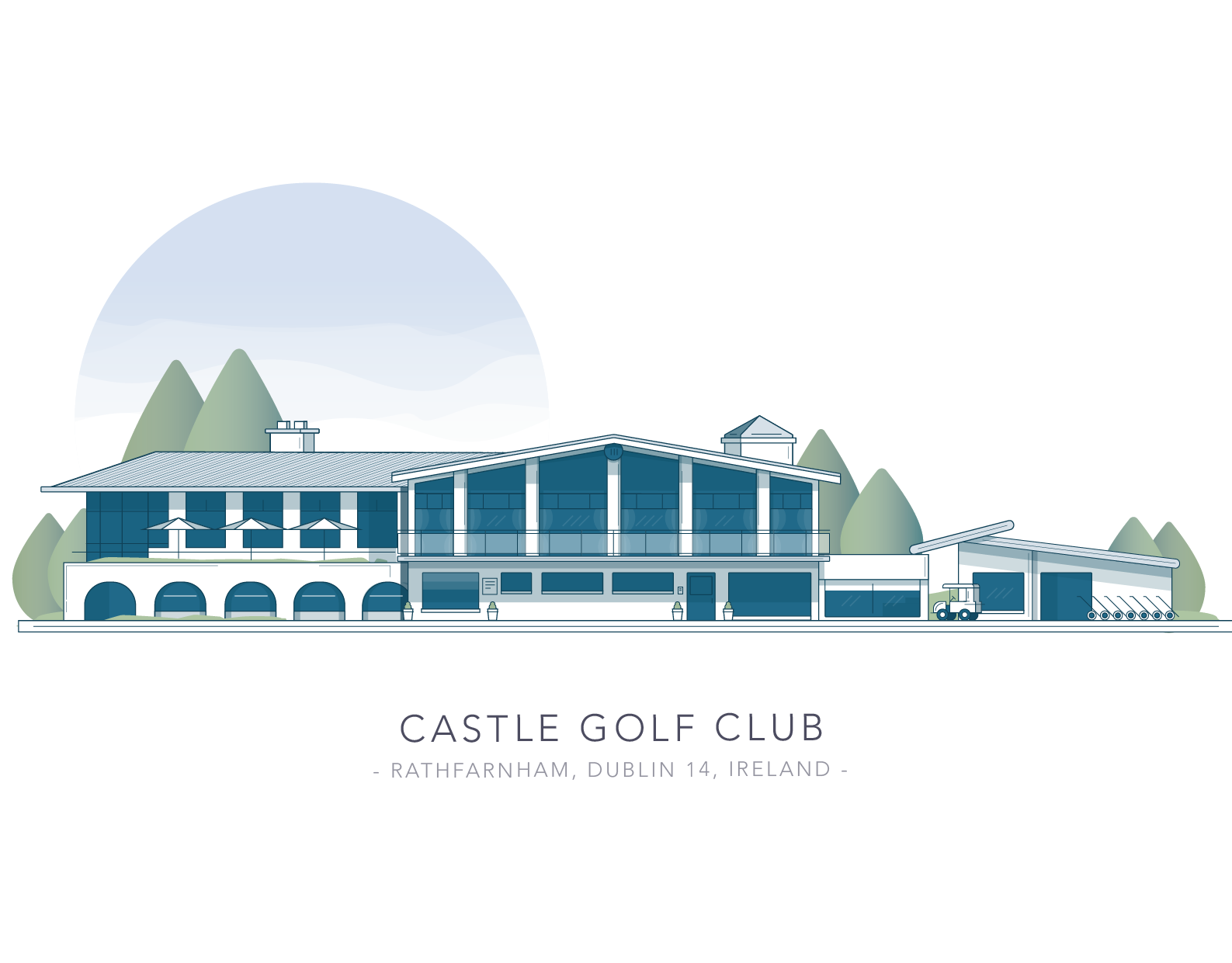 An illustrated celebration of Ireland’s golfing landmarks, where tradition meets design. Each clubhouse is reimagined with clean lines and subtle tones to capture the warmth, charm, and spirit of the game. Illustrated by Dublin-based designer, Alan Power.